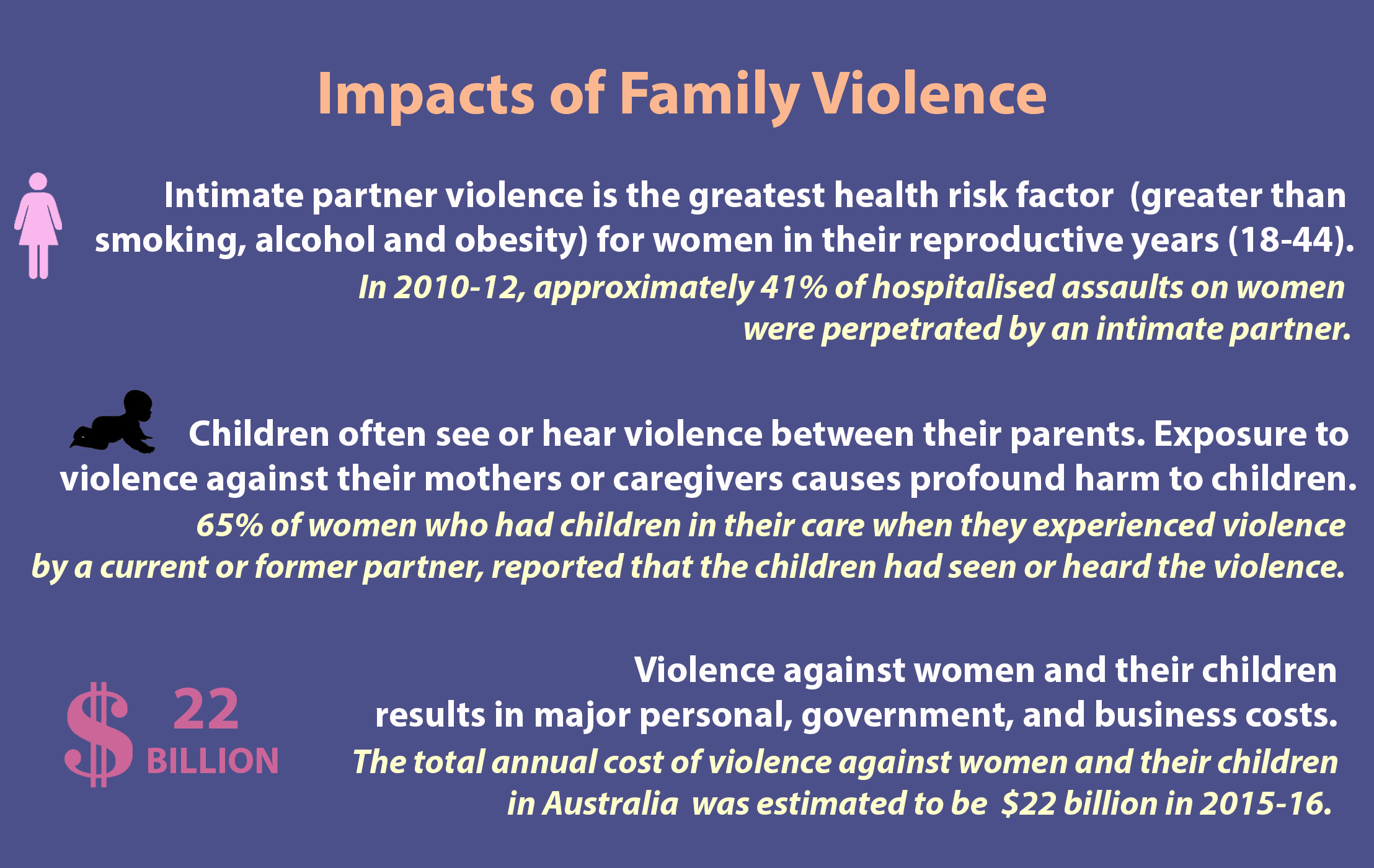 Family Violence has a profound impact on a person’s health and wellbeing, on families and communities, and on society as a whole.